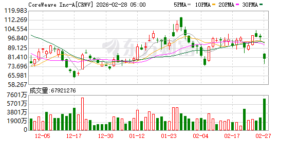 消息面上,CoreWeave最新公布的财报显示,公司2025年第四季度的营收高于分析师预期,但净亏损大幅增加,且其对今年第一季度的业绩指引也不及预期。