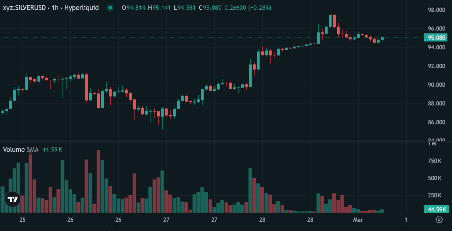 (白银永续合约小时线图,来源:Hyperliquid)