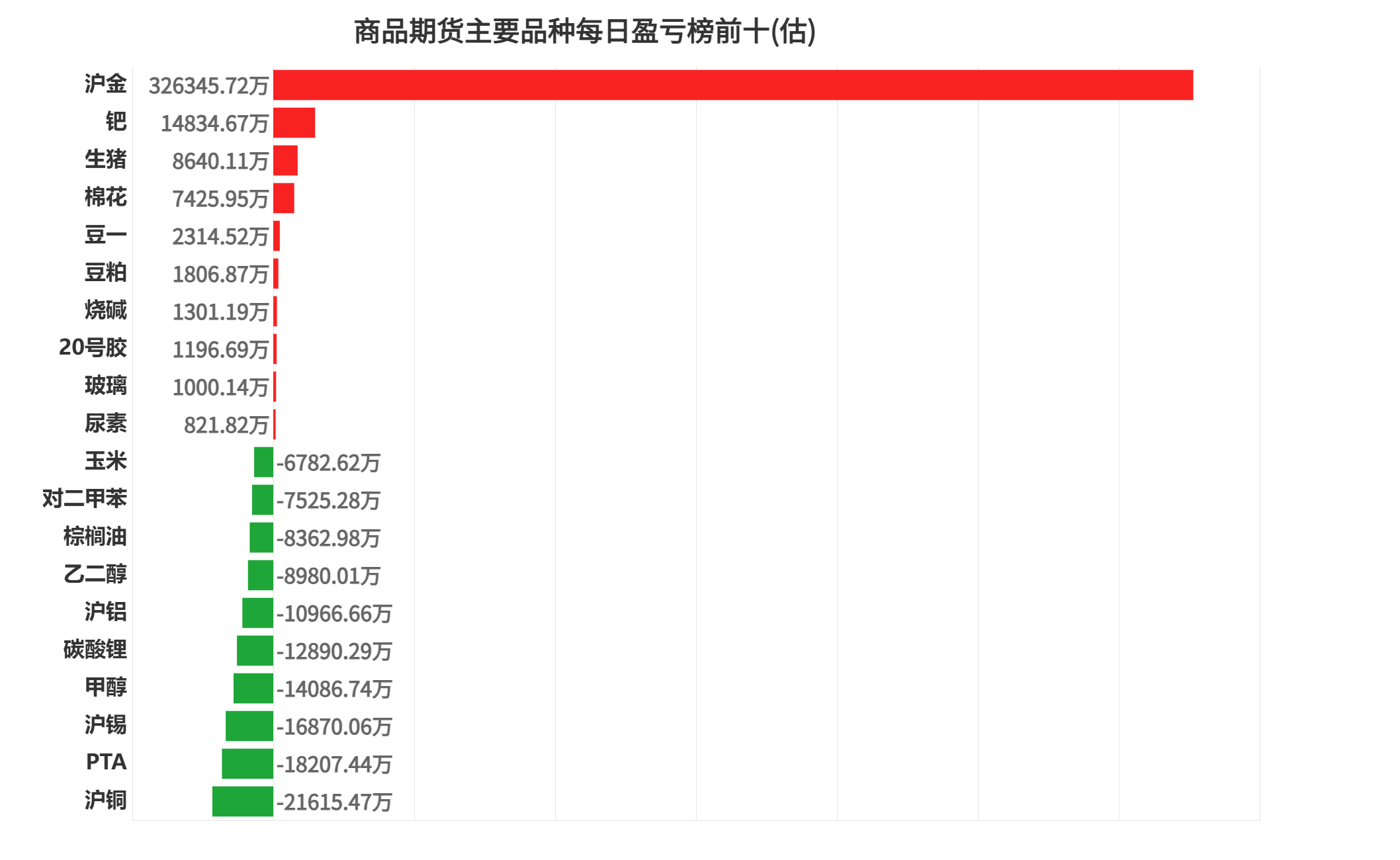 今日商品期货上榜机构席位中沪金盈利第一,为326345.72万元。