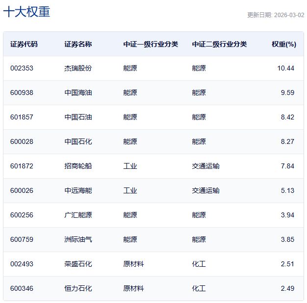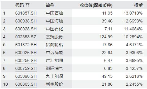 中证油气产业指数主要权重股