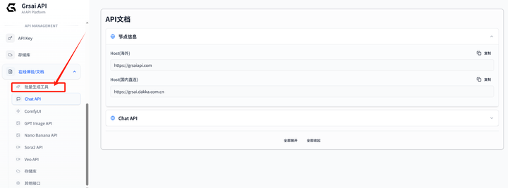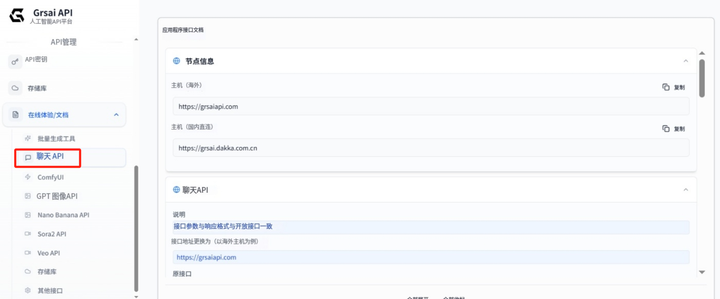 Grsai 提供两种接入地址(base url),根据网络环境选择:
