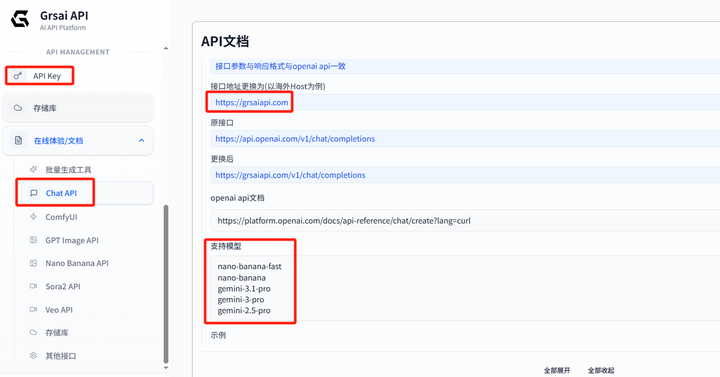 方式一:通过 Grsai 调用(OpenAI 兼容格式)