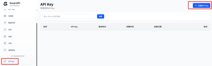 1.获取 APIKey:Grsai 控制台设置ApiKey( https://grsai.com/zh/dashboard/api-keys com 域名访问需要魔法,没有改成 ai),复制 ApiKey