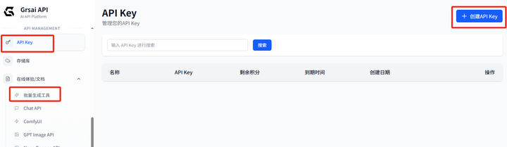 - 创建 API key:https://grsai.com/zh/dashboard/api-keys(com 域名要魔法,没有改 ai)