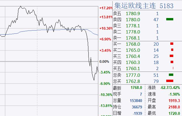 周四,石油股出现跳水。港股山东墨龙下午跳水,收盘下跌15.29%。期货市场上,集运欧线主力合约周四最高上涨17%,但收盘下跌3.42%,震荡幅度较大。原油期货主力合约尾盘大幅跳水。