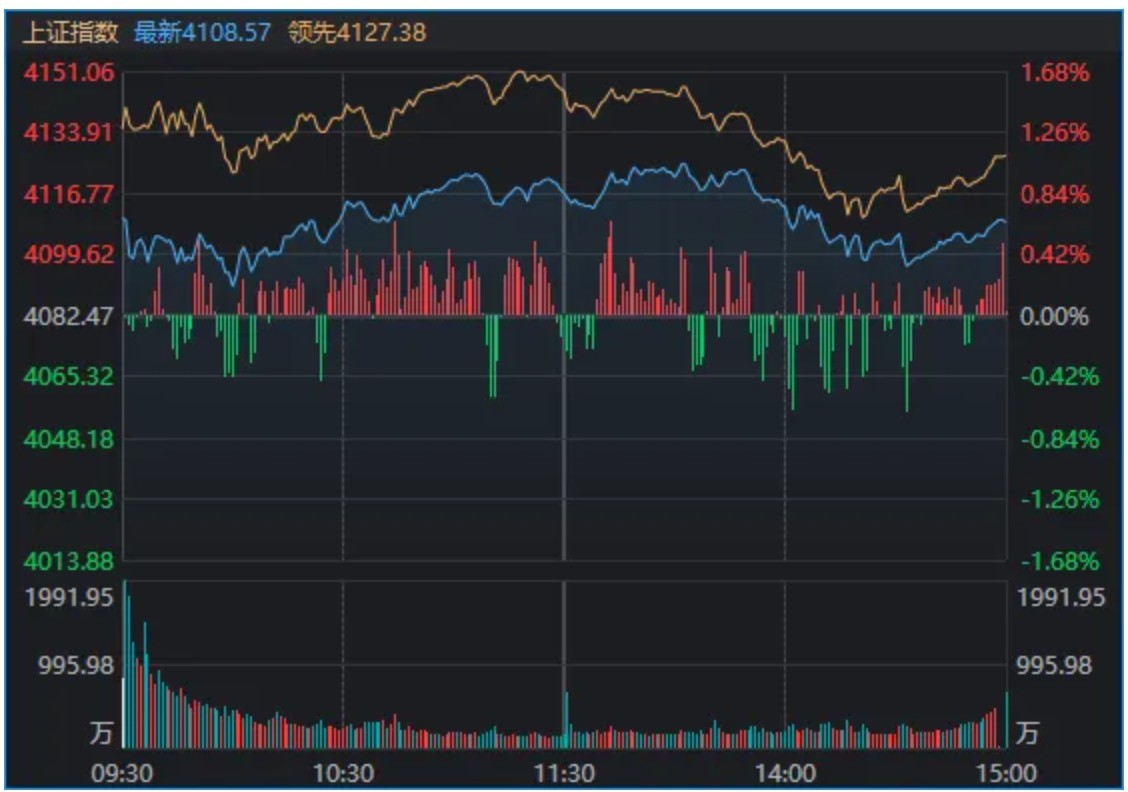 全市场近4100只个股上涨。沪深两市成交额2.39万亿元,较上一个交易日放量243亿元。