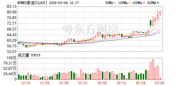随着围绕伊朗的冲突持续升级并对中东以外地区产生外溢影响,隔夜美股市场剧烈动荡,道指盘中一度暴跌超1100点,国际油价大幅飙升,WTI原油期货4月合约收涨超8%,创下自2020年5月以来最大单日涨幅。