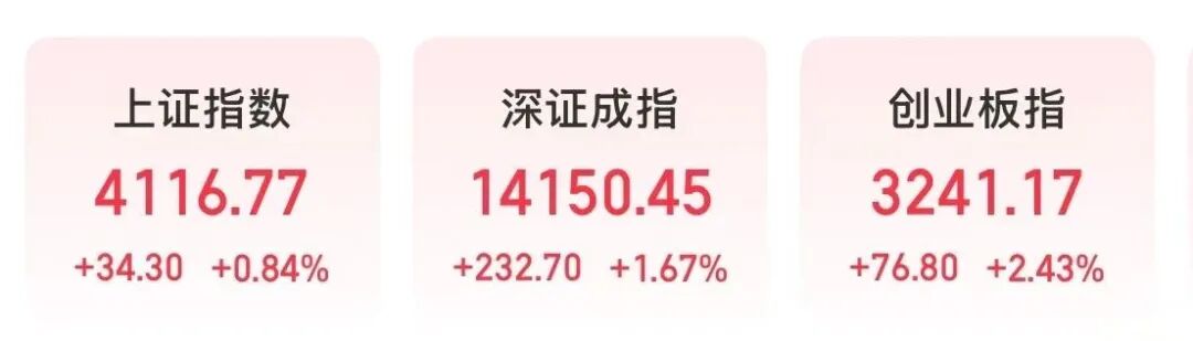 3月5日,市场早间震荡走强,创指盘中涨超3%。截至午间收盘,沪指报4116.77点,涨0.84%;深证成指报14150.45点,涨1.67%;创指报3241.17点,涨2.43%。沪深两市半日成交额1.55万亿元,较上个交易日缩量918亿元。