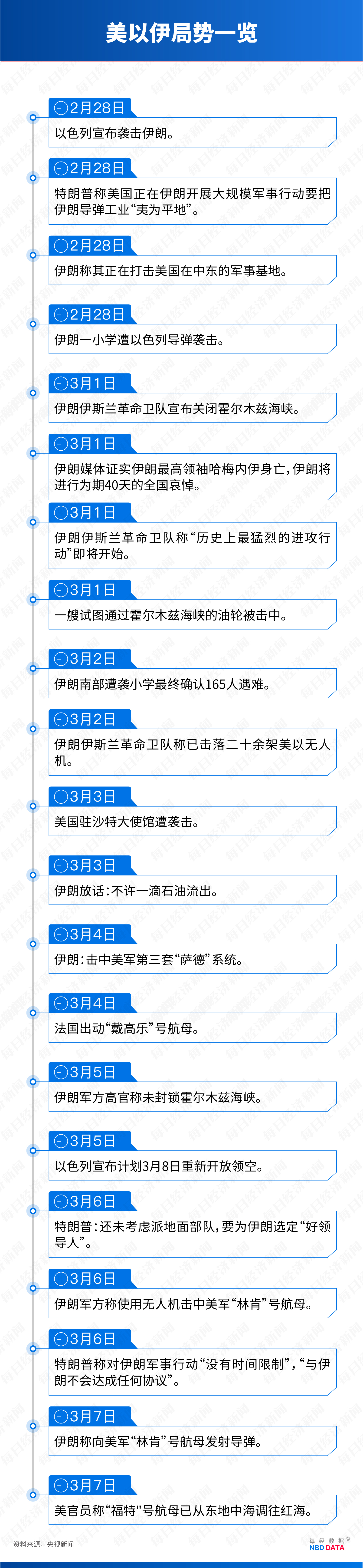 据央视报道,伊朗伊斯兰革命卫队指挥官贾巴里3月2日在一档电视直播中说,任何试图通过霍尔木兹海峡的船只都会被击毁。“我们不会允许一滴石油从该地区流出”。