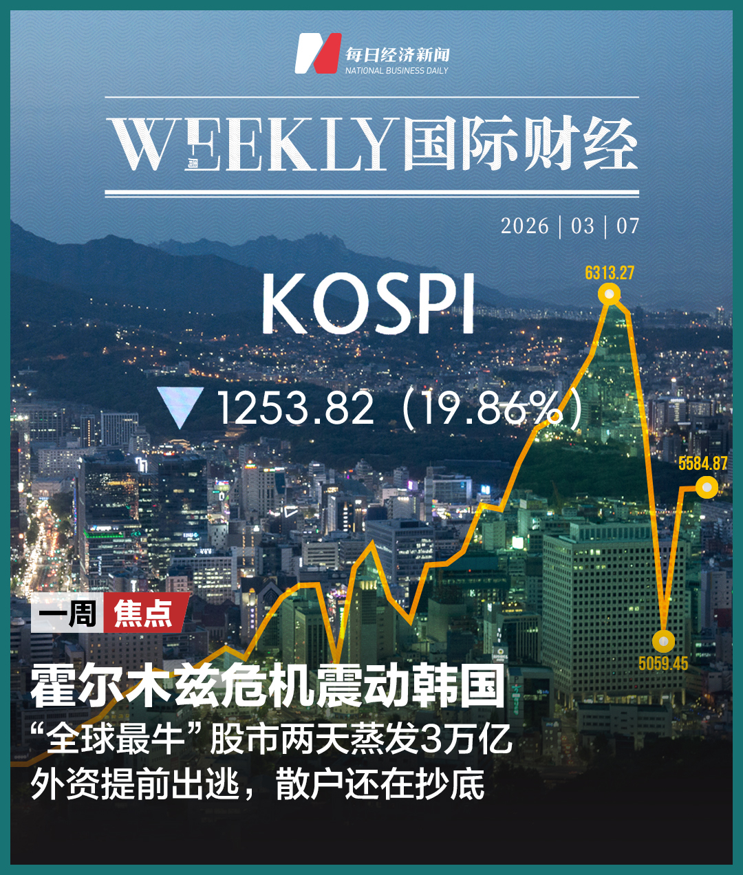 ◆ 6800公里外的霍尔木兹海峡危机,竟击穿了被称为“全球最牛”的韩国股市!2025年至2026年2月,韩国综合股价指数累计大涨159.66%,而在今年3月3日和4日,该指数两天蒸发约3万亿元市值,还触发了熔断机制。嗅觉敏锐的外资早已提前出逃,2月净卖出额创纪录,而韩国散户却逆势大举抄底,其中不乏大量缺乏市场经验的老年人。这场暴跌的背后,是韩国高度依赖中东能源的脆弱结构,以及股市权重高度集中的深层隐患。