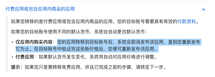 有类似操作过的朋友吗?默认货币不同的账号之间转移应用会导致应用下架吗?