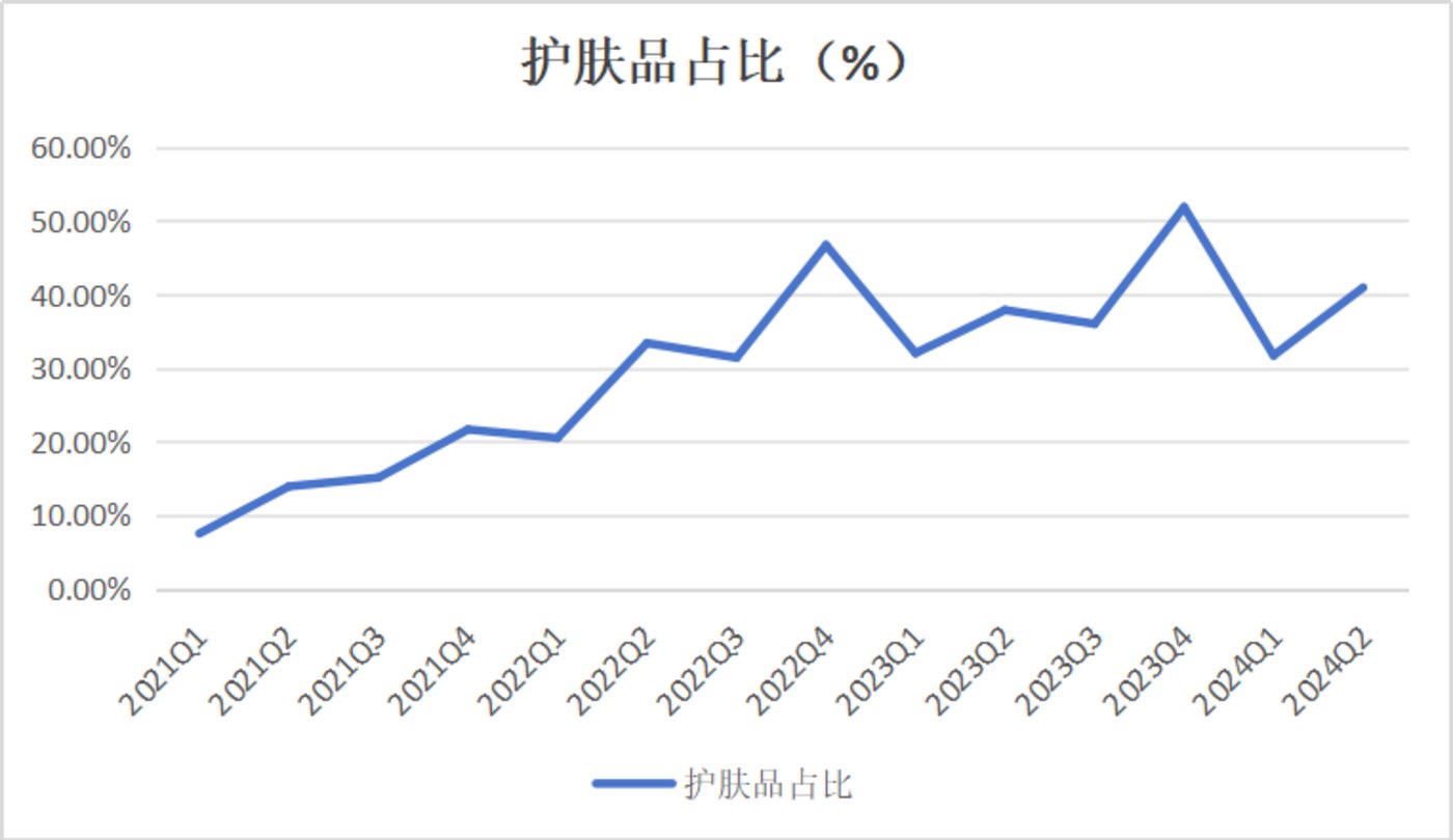 从逸仙电商财报中不难看出其十分强调护肤品在其收入中的占比,本季度逸仙电商的护肤品收入占比 40.93%,去年同期为 37.88%,逸仙的护肤品板块收入占比总体而言也算是在呈上升趋势。
