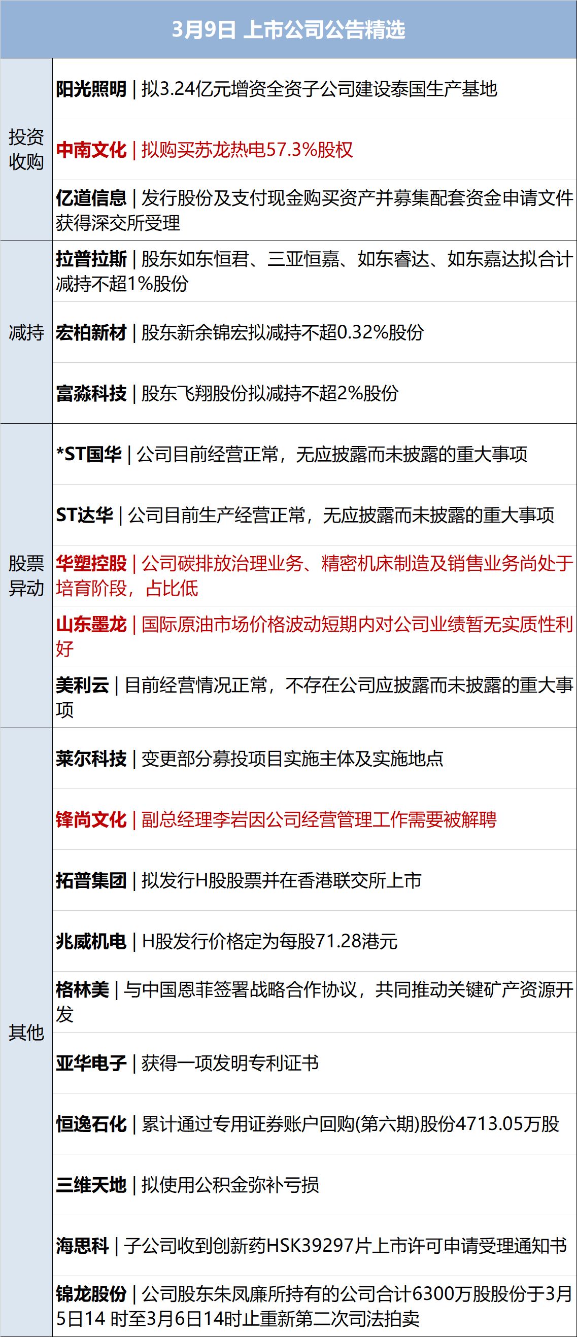 高鑫零售(HK06808,股价1.65港元,市值157.42亿港元):3月8日,大润发母公司高鑫零售公告称,鉴于李卫平女士至今仍未能取得联络,其于一段长时间内在未请假情况下,未能履行其职责,董事会已议决免除李女士作为本公司执行董事之职务,自3月8日起即时生效。董事会主席华裕能已获委任为本公司首席执行官、由非执行董事调任为执行董事,并获委任为本公司之授权代表,自3月8日起生效。公告称,李女士不再担任本公司首席执行官及授权代表,但其仍将继续为本集团之雇员。