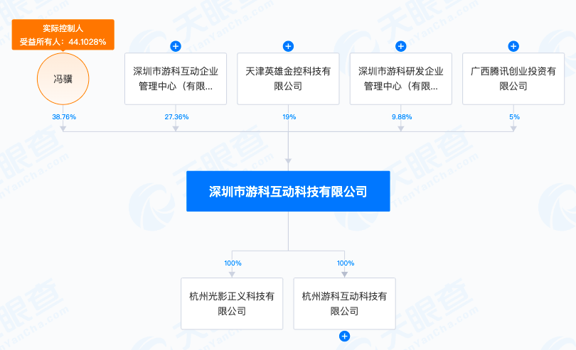 天眼查信息显示,目前,游戏科学背后公司深圳市游科互动科技有限公司的股权结构为:腾讯持股5%,CEO冯骥持股38.75%。