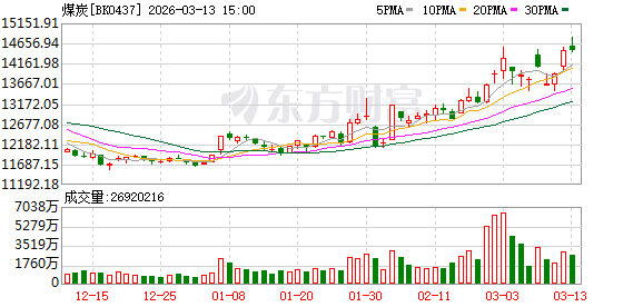 消息面上,美伊冲突下油气价格暴涨引发能源替代效应。东方证券发布研报称,煤炭市场的传导体现在燃油成本的上升导致海运费用提高、天然气价格飙升促使部分地区增加煤炭发电以替代高价天然气,有望带动煤炭价格反季节性上升。