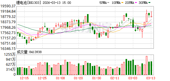 3月13日,锂电池指数盘中大涨3%,此前持续强势的概念股金正大开盘后1分钟内封板。截至午间收盘,璞泰来、横店东磁涨停,中科电气涨超14%,尚太科技涨超7%。整个板块一度有35只股票涨幅超过5%。