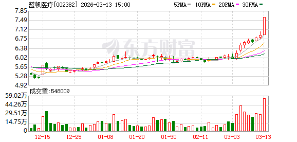 二级市场方面,蓝帆医疗今日强势涨停,3月以来累计涨幅达24.84%。