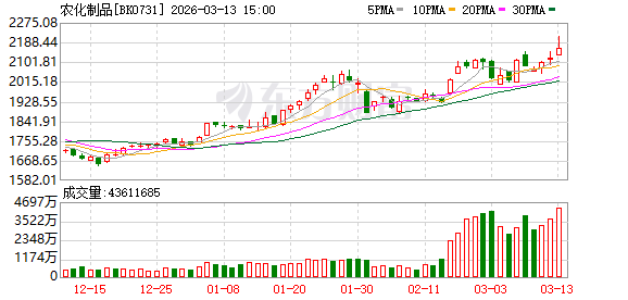2026年以来,农化制品个股走势较好,仅2股录得股价下跌。北交所上市公司农大科技股价已翻倍,赤天化、金正大累涨超八成,川金诺、潞化科技、广康生化等4股区间涨幅均在50%以上。