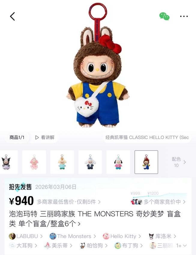 3月12日,泡泡玛特又把LABUBU和三丽鸥家族拉到一起,推出联名款,一上线就被抢空。这种“神仙联动”之所以能火,是因为它同时戳中了两拨人的童年记忆和当下情绪。