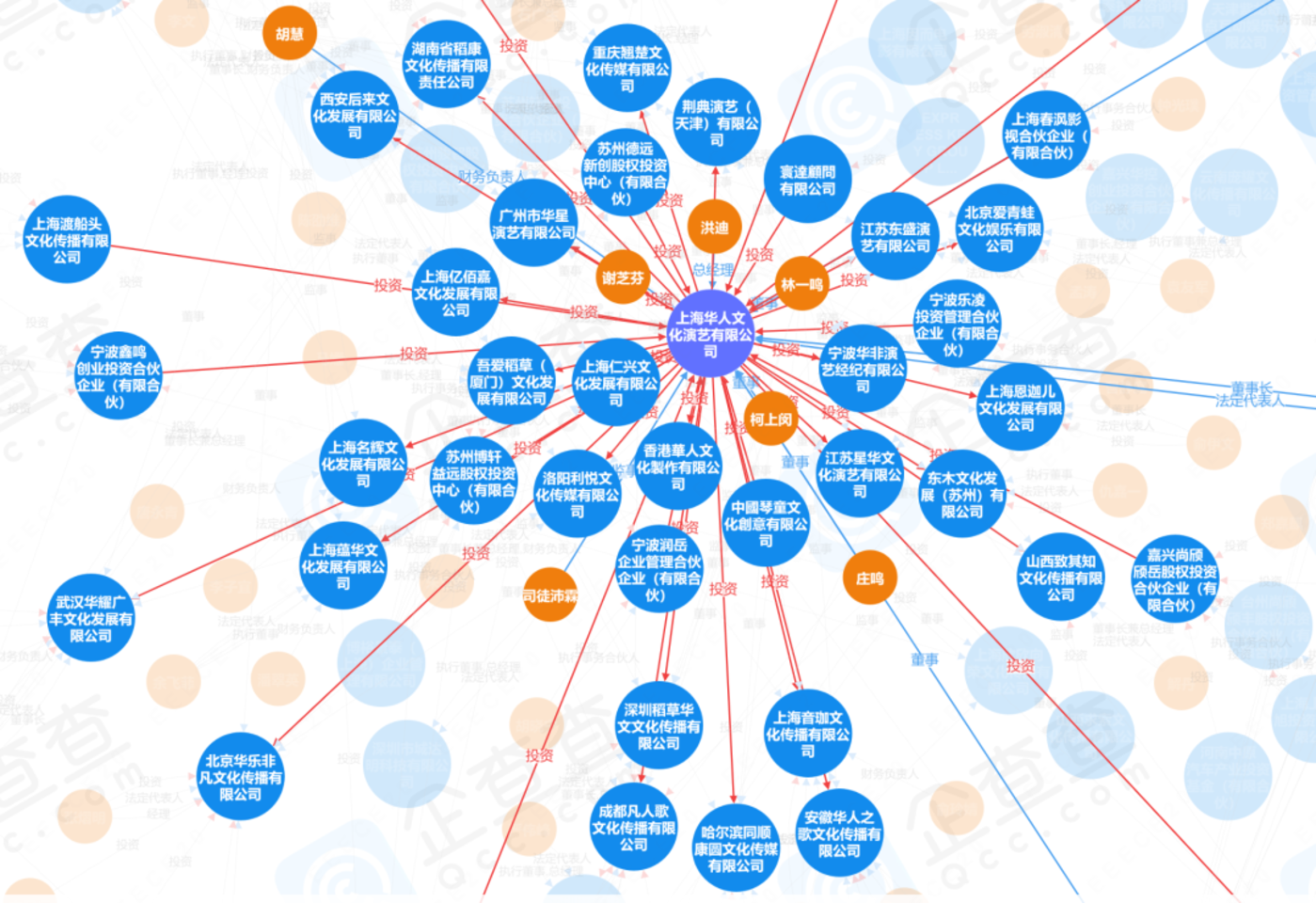 早在2018年成立之时,华人文化演艺就集结了全国多省市的21家能够承接大型演唱会的公司,透过企查查数据,邓紫棋长沙站的主办方湖南省稻康文化传播有限责任公司,林俊杰、任贤齐等艺人厦门站的主办方吾爱稻草(厦门)文化发展有限公司,五月天北京站的主办方北京华乐非凡文化传播有限公司等,经股权穿透,其控股方都是华人文化演艺。截至目前,华人文化演艺在全国控股的公司已接近40家。