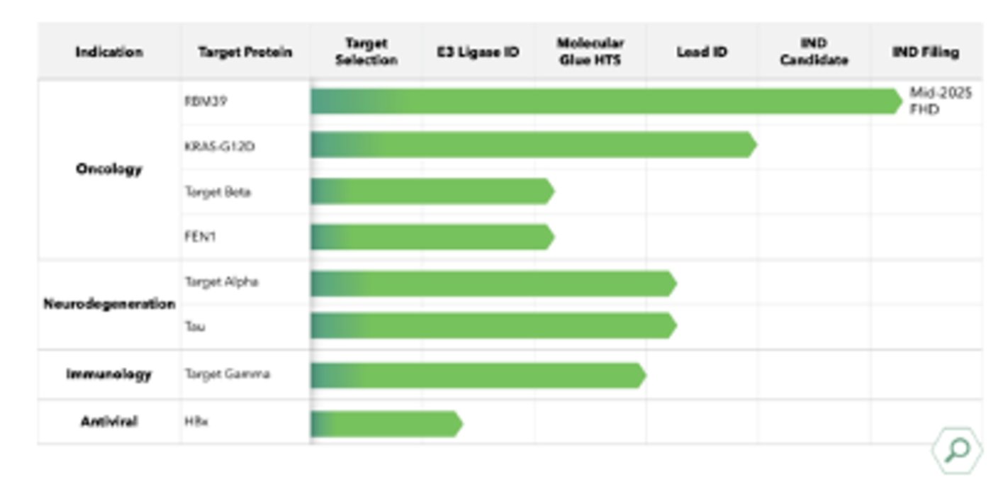其拥有6个自主的开发项目和2个与礼来合作的项目,使用了5种新型E3连接酶,作用在肿瘤、神经退行性疾病、免疫和病毒疾病;并预计2025年初将RBM39提交IND,今年底开发用于老年痴呆症的口服Tau降解剂的先导分子。