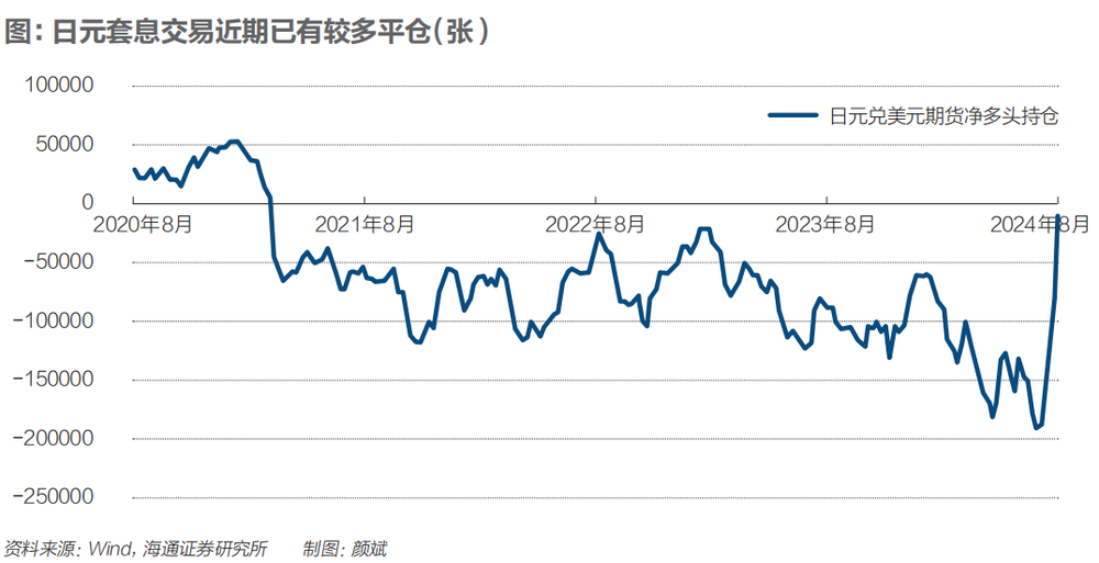 近日各投行分析报告也在佐证此点。摩根士丹利认为,60%的套利交易已经平仓,摩根大通的预估为接近75%的交易已经平仓,日本大和证券则认为95%的日元套利交易已经平仓。