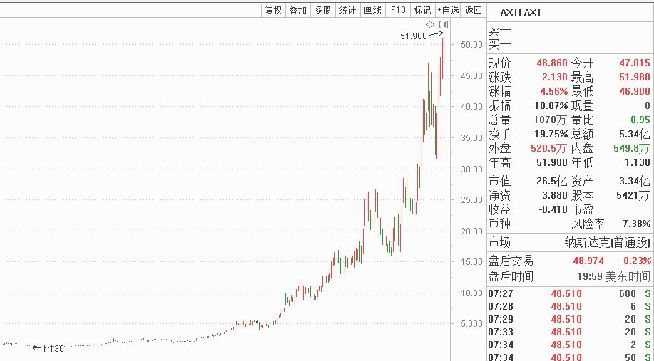 此外,3月16日还有一个重要消息是英伟达GTC大会。从美股来看,AXT股价近一年上涨45倍,其涉及磷化铟产品。磷化铟下游最大需求是光模块。