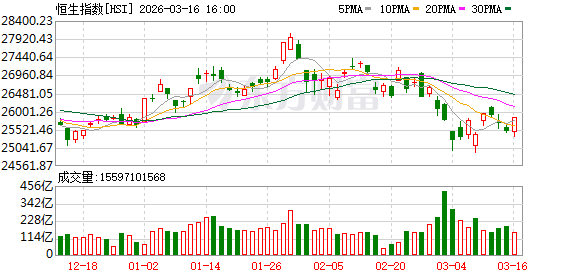 港股3月16日收盘走高,恒生指数收报25834.02点,涨368.42点,涨幅1.45%;恒生科技指数收报5111.78点,涨133.7点,涨幅2.69%。恒生指数成分股中宁德时代、比亚迪股份、小米集团-W涨幅居前,紫金矿业、洛阳钼业、中国宏桥跌幅靠前。恒生科技指数成分股中比亚迪股份、华虹半导体、小米集团-W涨幅居前,小鹏汽车-W、同程旅行、海尔智家跌幅靠前。