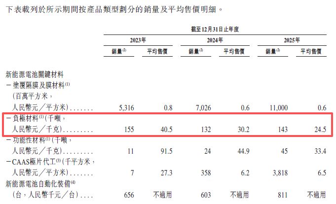 这种业绩波动反映了中国新能源电池材料市场的激烈竞争。受下游产能阶段性过剩影响,璞泰来核心产品之一的负极材料平均售价面临下行压力。例如,公司负极材料的平均售价从2023年的40.5元/千克,大幅下滑至2024年的30.2元/千克,并在2025年进一步下探至24.5元/千克。单价的下跌,直接拖累了公司2024年的整体盈利能力。
