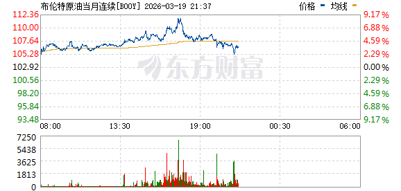 受中东局势影响,国际原油期货价格今日继续上涨。截至北京时间3月19日16:57,NYMEX WTI原油期货主力合约上涨1.67%,报97.05美元/桶;ICE布油期货主力合约上涨6.88%,报110美元/桶。