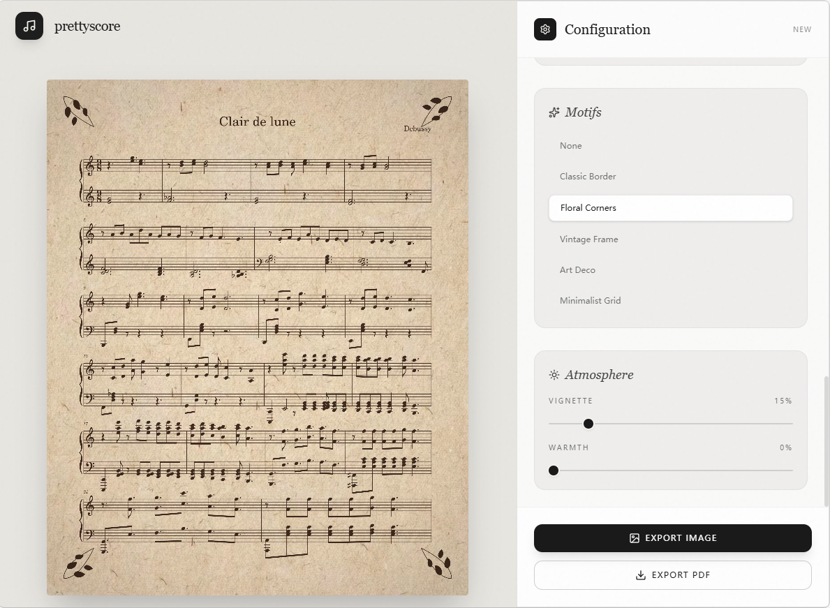 加上装饰边框或微调暗角、暖调,让琴谱更有氛围感