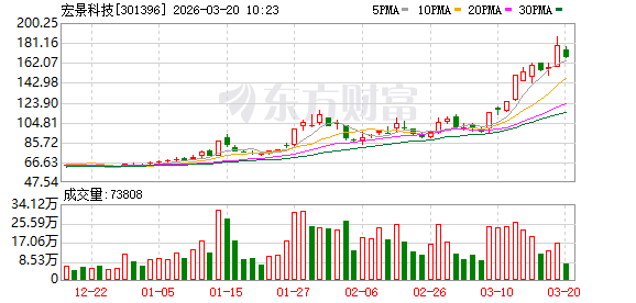 3月19日上午,算力板块继续大涨。截至上午收盘,铜牛信息“20cm”涨停,利通电子、莲花控股、美利云等个股涨停,宏景科技涨超15%,东方国信、润泽科技等个股大涨超3%。其中,宏景科技(301396)股价再创历史新高,相比2024年的低点已暴涨十倍以上。
