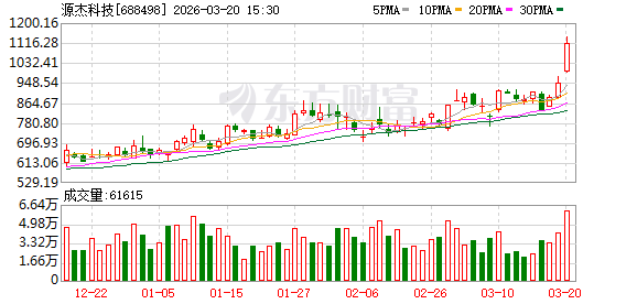 今日,CPO概念股源杰科技股价续创历史新高,成为科创板继寒武纪后第二只千元股,同时也是A股历史上第八只千元股。截至发稿,源杰科技20CM涨停,股价达到1140元,反超寒武纪,跃居A股市场第二高价股,仅次于贵州茅台。