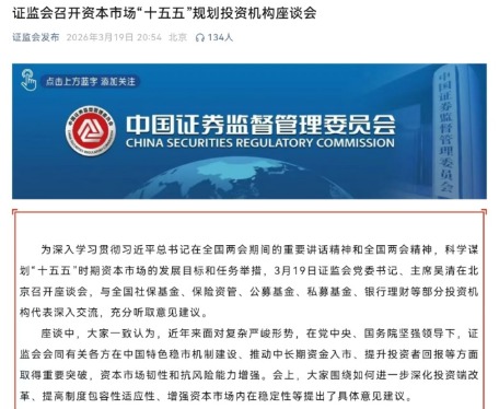 这场会议的首个核心看点,便是座谈主体精准指向了投资机构。这是“十五五”规划公布后,监管层面首场明确市场参与主体定位的专题座谈会,分量不言而喻。对比近期监管会议,此前证监会党委召开的传达学习习近平总书记重要讲话精神、全国两会精神会议,以及2026年全面从严治党暨纪检监察工作会议,均偏向宏观层面部署与方向性。