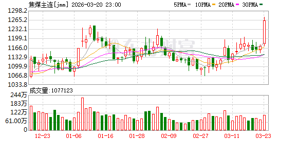 3月20日夜盘,焦煤期货主力2605合约开盘后直线拉升,大涨8.73%。