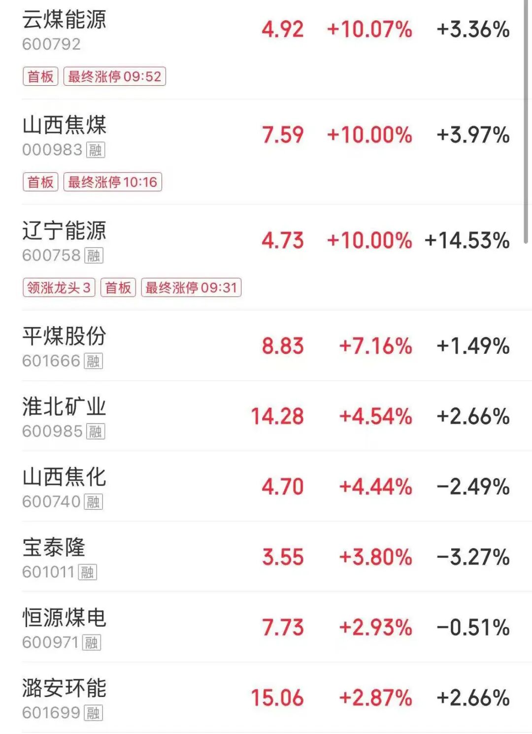 煤炭板块逆势走强,云煤能源、辽宁能源、山西焦煤等涨停。