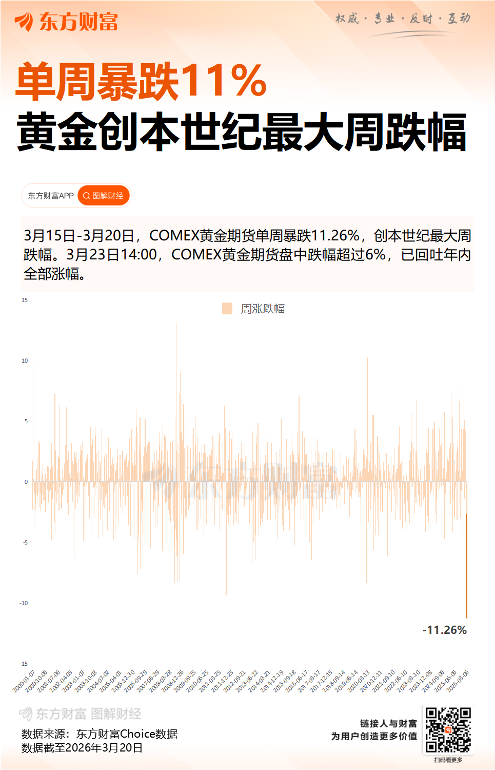上周金价累计跌幅超过10%,创下自1983年2月以来最大单周跌幅;同时,较1月29日创下的历史高点5594.82美元,累计回落已超过20%。