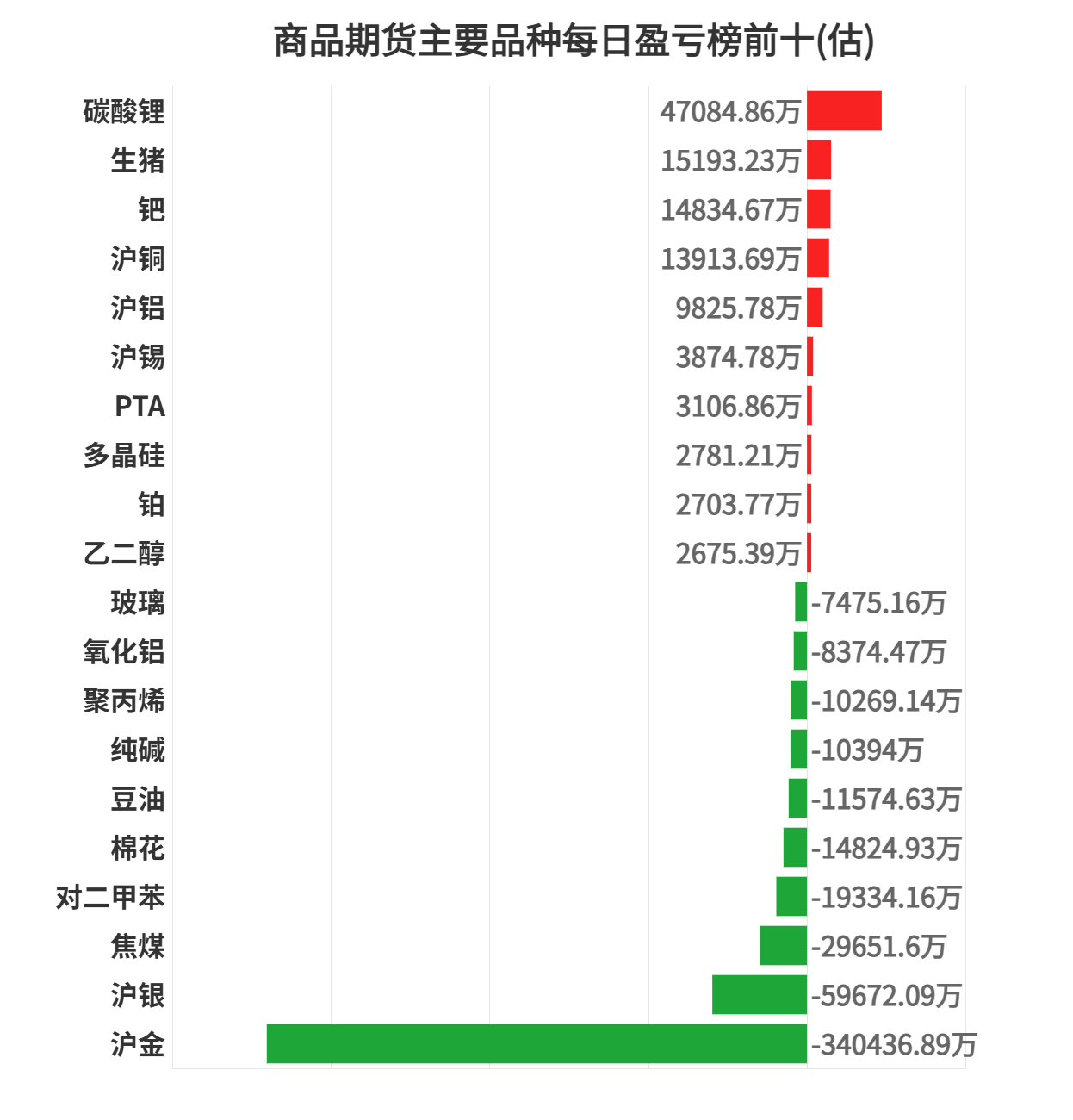 今日商品期货上榜机构席位中碳酸锂盈利第一,为47084.86万元。