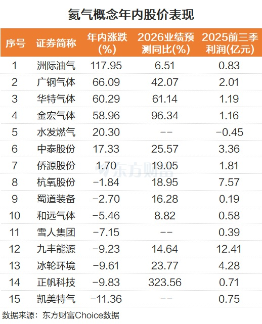 从股价表现来看,洲际油气年内股价已翻倍,上涨117.95%。广钢气体、华特气体、金宏气体也表现强势,分别上涨66.09%、60.29%和58.96%。