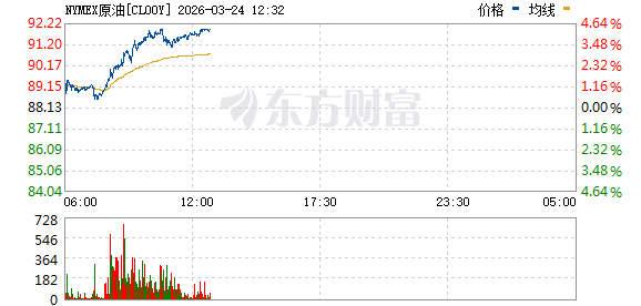 3月24日亚洲交易时段,国际油价再度拉升,布伦特原油期货日内一度站上100美元/桶,截至北京时间10:50,日内涨幅达3.83%,报99.61美元/桶;WTI原油价格涨3.45%,报91.19美元/桶。