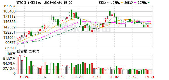 3月24日,碳酸锂期货开盘跳空高开,延续前日涨势。碳酸锂主力合约盘中涨超6%,截至发稿最高触及154340元/吨。自2025年11月以来,该合约已累计上涨逾80%,今年以来累计涨幅超26%。