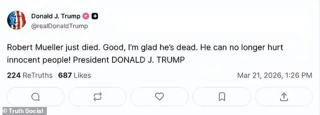 美国联邦调查局前局长、曾主导“通俄门”调查的特别检察官罗伯特·米勒20日去世,美国总统特朗普21日发帖“庆祝”,引发美国舆论批评。