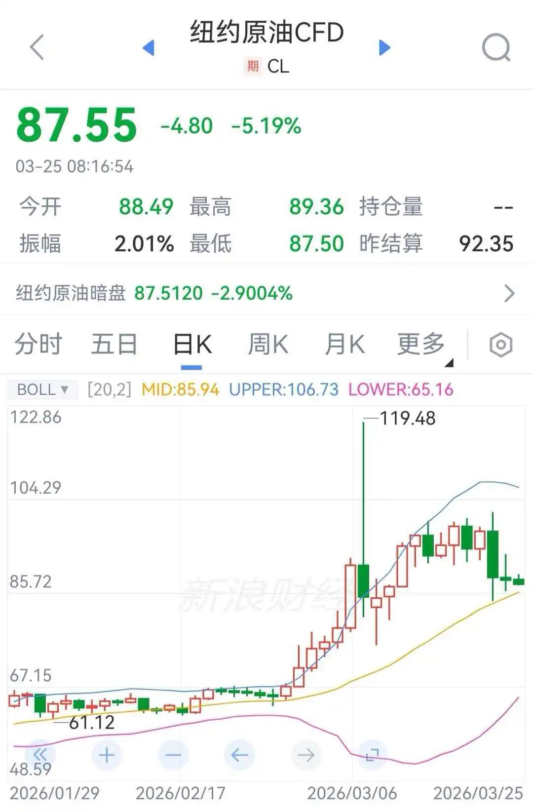 Home股票国际油价大跌,现货黄金、白银拉升丨盘中速报 股票 2026 年 3 月 25 日 国际油价大跌,现货黄金、白银拉升丨盘中速报 By 每日经济新闻 - Advertisement - 每经记者|杜宇 每经编辑|金冥羽 记者|杜宇 编辑|金冥羽 杜波 校对|张锦河 3月25日,国际油价大跌。布伦特原油期货跌近6%,报94.35美元/桶,WTI原油期货跌5.19%,报87.55美元/桶。 值得一提的是,现货黄金、白银上涨,美元指数下跌。 (免责声明:本文内容与数据仅供参考,不构成投资建议,使用前请核实。据此操作,风险自担。) 文章转载自 每经网 - Advertisement - Must Read 24小时 10个月飙涨120%!锂价来到十字路口 产业链公司如何应对? 古方信息网 - 2026 年 4 月 6 日 - Advertisement - 股票 折叠屏iPhone要来了,富士康已在试产!顶配版或超2万元,是苹果最贵手机 2026 年 4 月 6 日 期货 4月黄金市场如何?需关注几个变量 2026 年 4 月 6 日 贵金属 特朗普强硬续伊朗军事行动,金银价格暴跌 2026 年 4 月 6 日 Related News 24小时 10个月飙涨120%!锂价来到十字路口 产业链公司如何应对? 2026 年 4 月 6 日 股票 折叠屏iPhone要来了,富士康已在试产!顶配版或超2万元,是苹果最贵手机 2026 年 4 月 6 日 期货 4月黄金市场如何?需关注几个变量 2026 年 4 月 6 日 贵金属 特朗普强硬续伊朗军事行动,金银价格暴跌 2026 年 4 月 6 日 24小时 芯片测试量价齐升 优质概念股稀缺(附名单) 2026 年 4 月 6 日 - Advertisement -