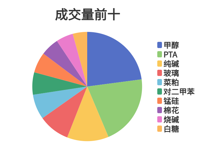 市场成交量前十和持仓量前十如下图所示: