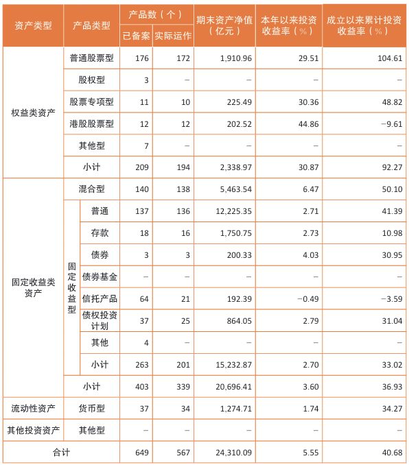 在固定收益类资产方面,混合型产品在2025年实现了6.47%的收益,而在其他产品上,也大部分实现了正收益,仅有信托产品在2025年的收益为-0.49%。