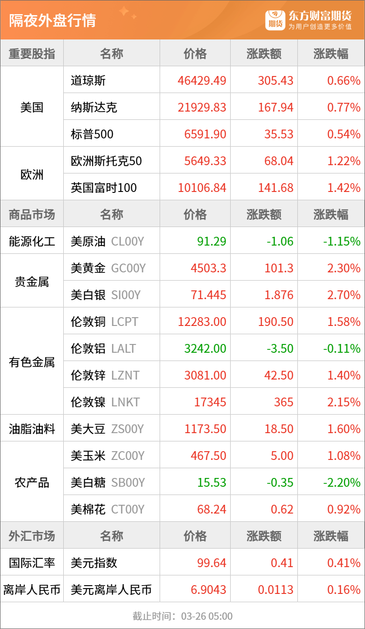黄金:华尔街著名经济学家彼得·希夫预测,黄金当前的抛售是在重演“2008年全球金融危机”的剧本,并预测黄金后续将反弹至11400美元。希夫认为,战争结束后,政府仍需支付补充武器和重建费用,财政赤字和通货膨胀将更大,对黄金构成利好。(财联社)