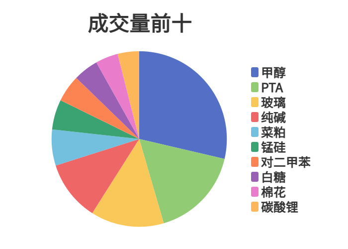 市场成交量前十和持仓量前十如下图所示: