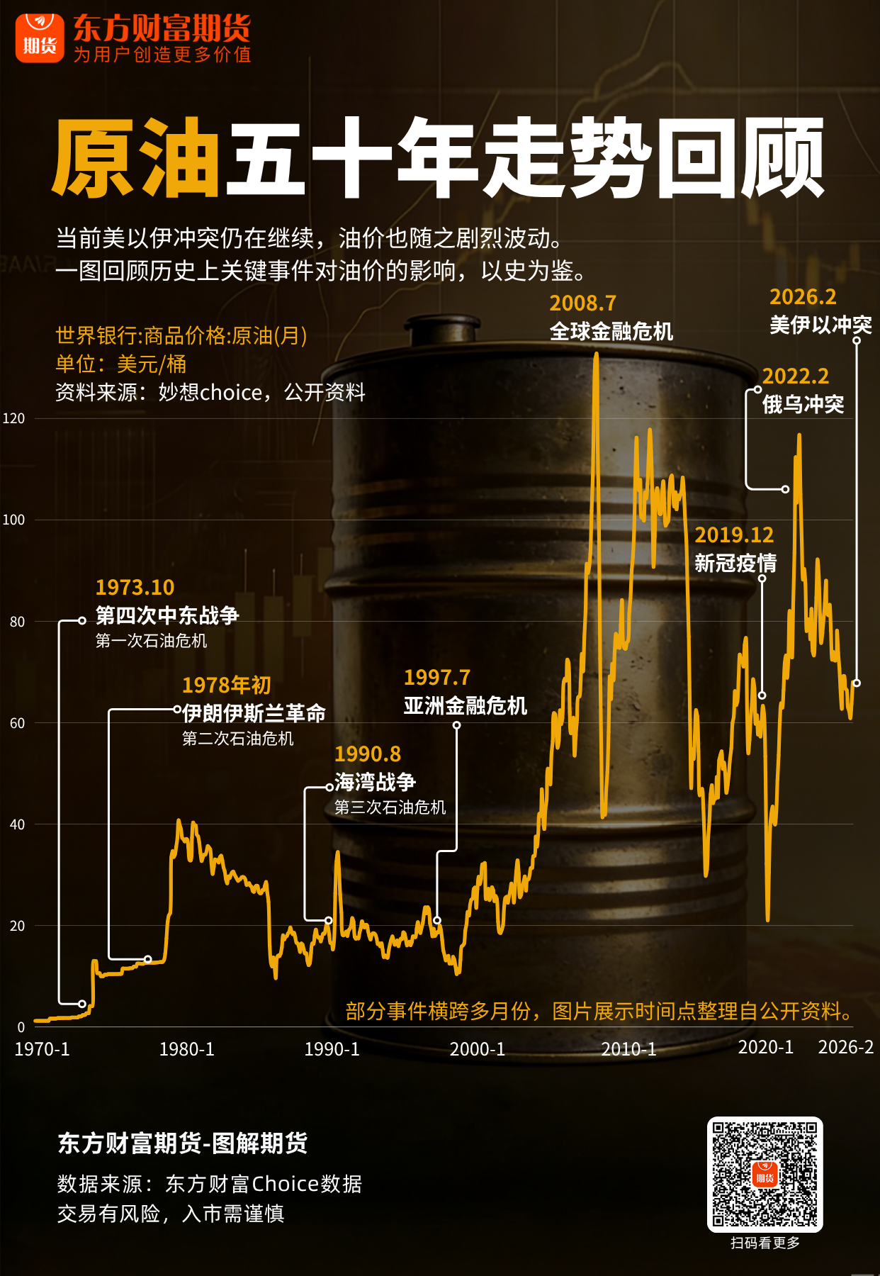 Home期货图解期货 | 五十年原油走势回顾 期货 2026 年 4 月 4 日 图解期货 | 五十年原油走势回顾 By 古方信息网 - Advertisement - 当前美以伊冲突仍在继续,油价也随之剧烈波动。一图回顾历史上关键事件对油价的影响,以史为鉴。 (东方财富研究中心) 文章转载自 东方财富 - Advertisement - Must Read 24小时 一图速览移动电源“新国标” 古方信息网 - 2026 年 4 月 4 日 - Advertisement - 世界 美国AI巨头51万行源代码泄露!开发者直接“抄作业”?律师提示有风险 2026 年 4 月 4 日 基金 交投活跃!科创芯片设计ETF天弘(589070)标的指数逆市拉升涨超1%,成交额近2000万元同标的第一 2026 年 4 月 4 日 期货 伊朗警告将摧毁美以在中东所有资产 2026 年 4 月 4 日 Related News 24小时 一图速览移动电源“新国标” 2026 年 4 月 4 日 世界 美国AI巨头51万行源代码泄露!开发者直接“抄作业”?律师提示有风险 2026 年 4 月 4 日 基金 交投活跃!科创芯片设计ETF天弘(589070)标的指数逆市拉升涨超1%,成交额近2000万元同标的第一 2026 年 4 月 4 日 期货 伊朗警告将摧毁美以在中东所有资产 2026 年 4 月 4 日 股票 杨植麟称未来AI研发将由AI主导;一度爆火的Sora将被关闭|数智早参 2026 年 4 月 4 日 - Advertisement -