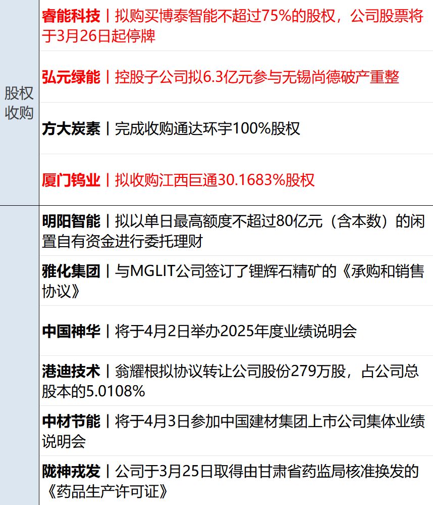 中国东航(SH600115,股价4.38元,市值967.44亿元):3月25日,中国东航公告,公司于2026年3月25日与空客公司在中国上海签订《101架A320NEO系列飞机购买协议》,向空客公司购买101架A320NEO系列飞机。本次购买飞机的目录价格合计约为158.02亿美元,按本次交易协议签署日当天中国人民银行公布的人民币兑美元中间价汇率(1美元兑6.8911元人民币)计算,约为1088.93亿元人民币。