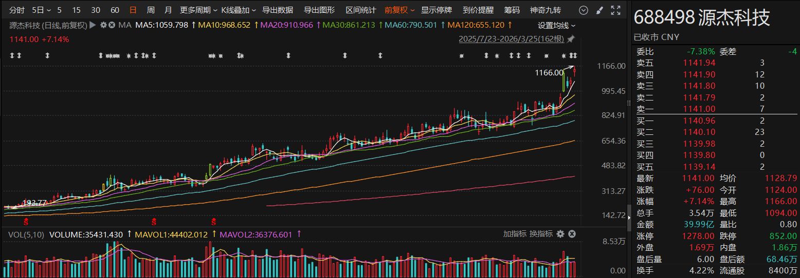 无论如何,这一成就标志着源杰科技正式跻身A股“千元股俱乐部”,成为2026年首只新晋千元股。